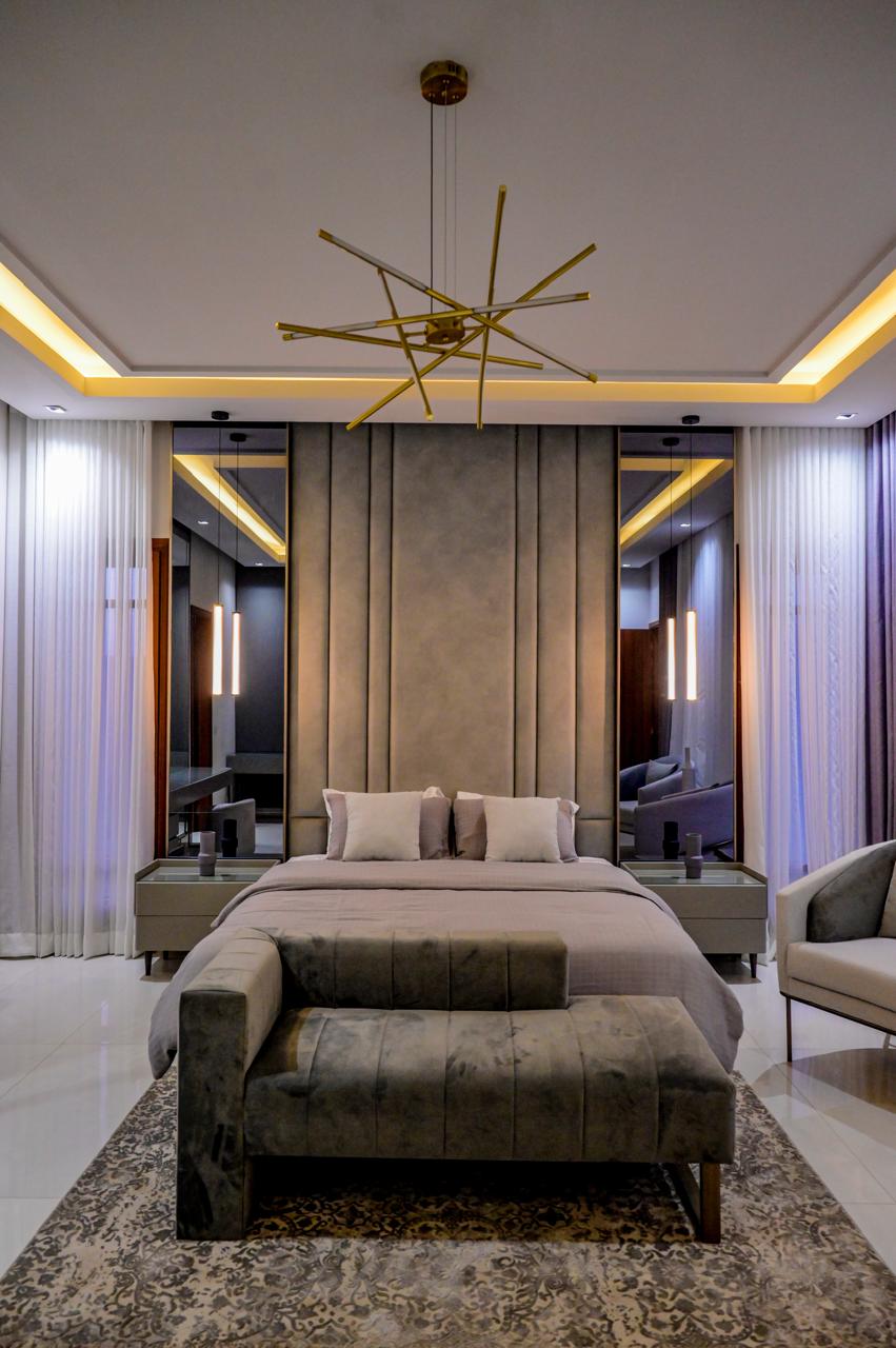 • Premium Woodwork: Extensive use of solid wood in wardrobes and paneling.
