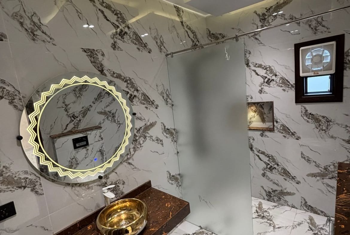 Premium Bathrooms: Modern vanities, glass shower cabins, and designer tiles.