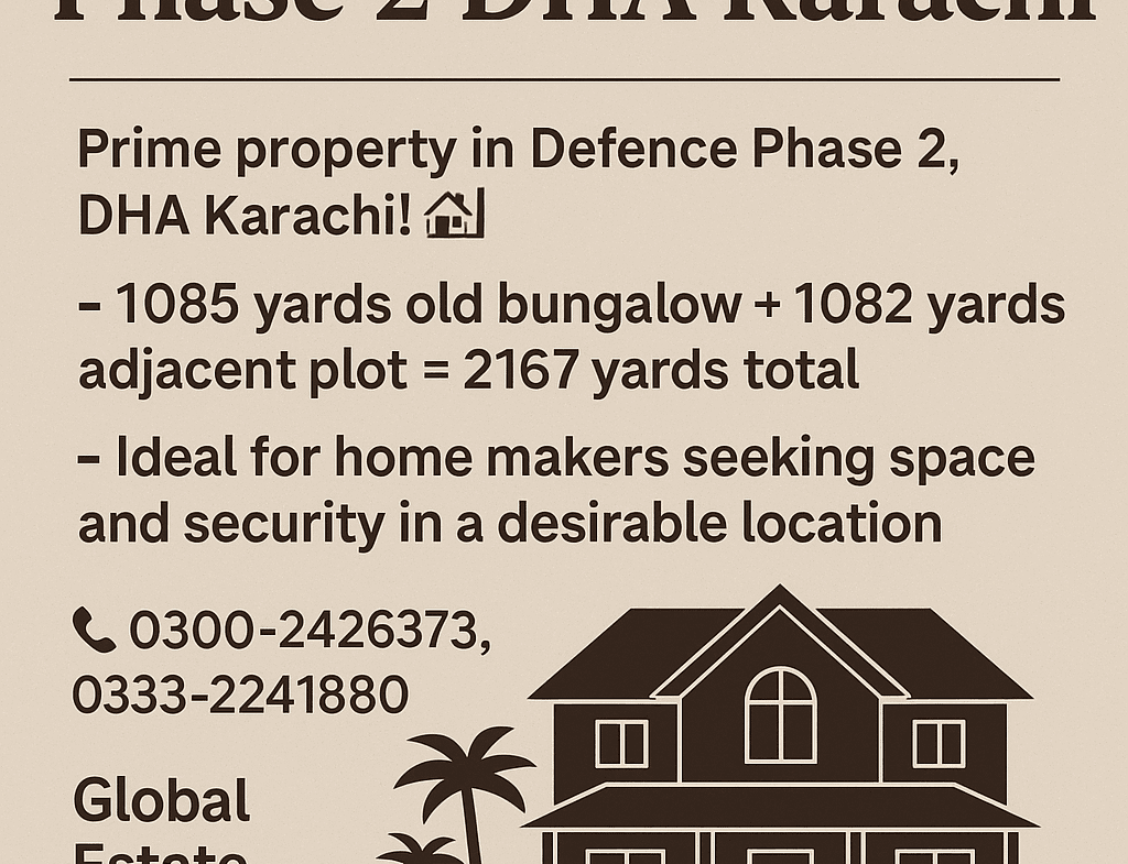 - 📐 Total Size: 2167 square yards (1085 yards bungalow + 1082 yards adjacent plot)